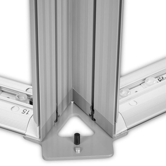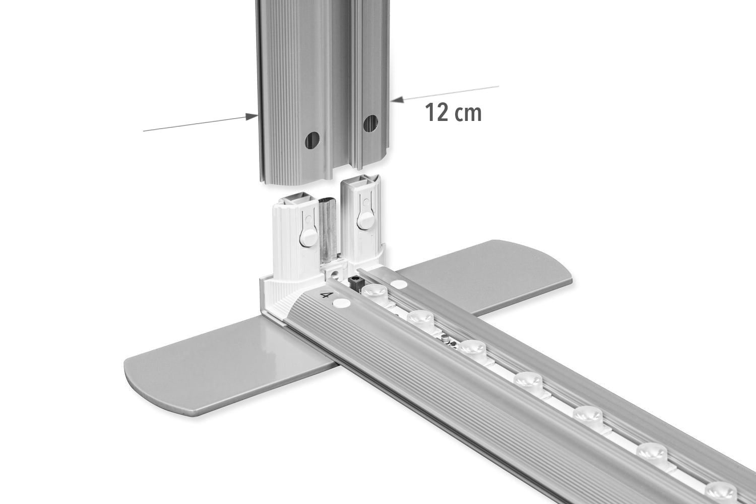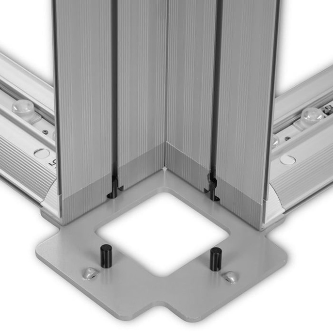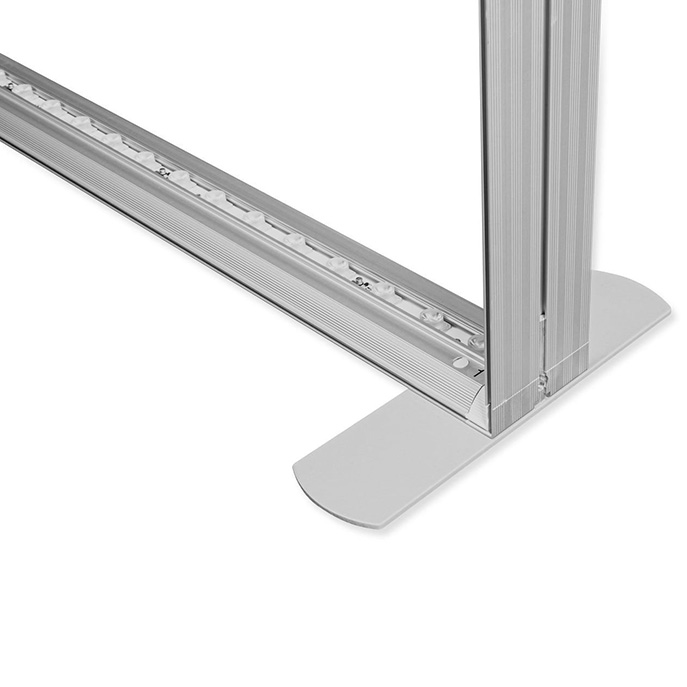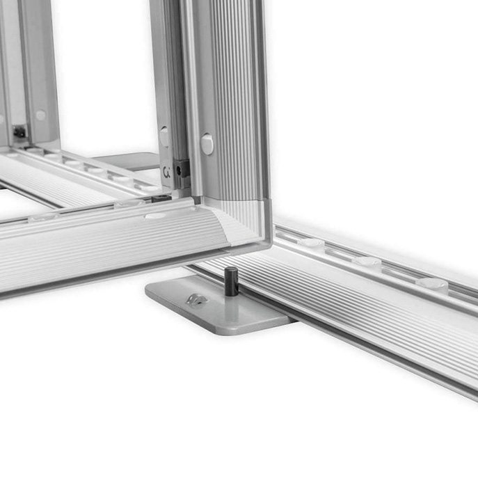 Przy systemie standardowo na wyposażeniu jest pełna stopa. Dodatkowo opcjonalnie można zakupić pół stopę, dzięki której ścianka LED może być przysunięta do samej ściany nie zabierają w ten sposób powierzchni targowej.