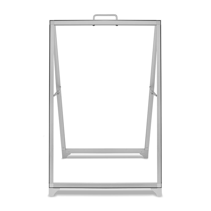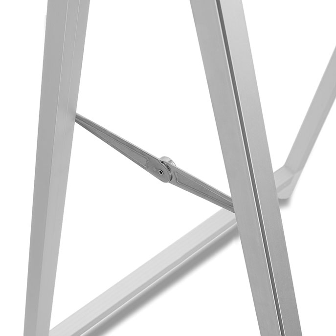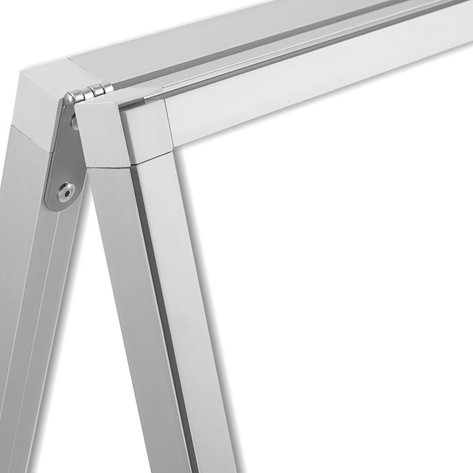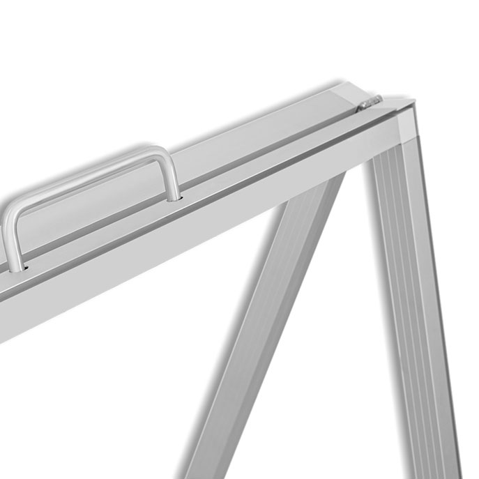 Potykacz w kształcie litery A odpowiedni do prezentacji grafiki na tkaninie. Wydruki tekstylne można łatwo zamocować za pomocą silikonowych pasków przyszytych po obwodzie wydruku SEG. Wszystkie elementy konstrukcji wykonane są z wysokogatunkowego anodowanego aluminium. Montaż bez użycia narzędzi.