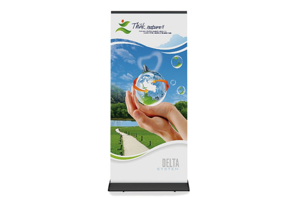 – rollup’y dwustronne – pozwalające na ekspozycję treści reklamowych z obu stron, co zwiększa ich widoczność i skuteczność podczas targów czy konferencji;